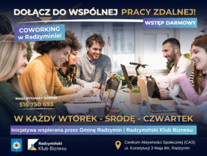 Od połowy marca 2026 r. ruszyły spotkania coworkingowe w Centrum Aktywności Społecznej w Radzyminie. Wspólnie z Gminą Radzymin zapraszamy przedsiębiorców i mieszkańców pracujących zdalnie na do wspólnej pracy i wyjścia z domu! To świetna okazja, aby popracować w inspirującym otoczen